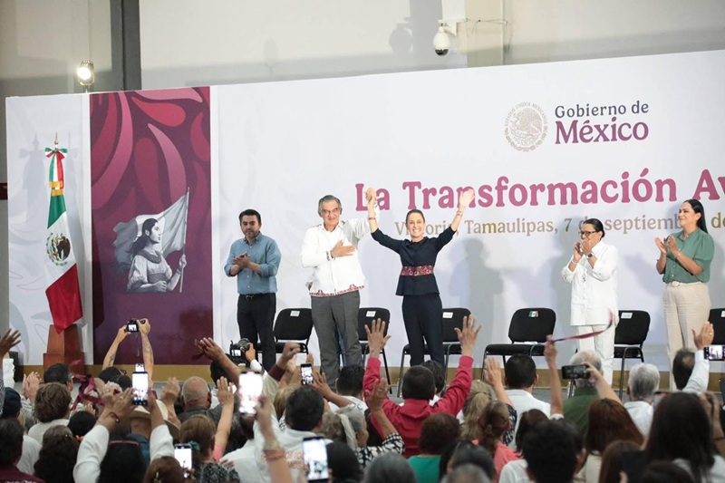 “¡Histórico en Tamaulipas! Desde el Polyforum de Ciudad Victoria recibimos a la presidenta Claudia Sheinbaum Pardo, quien en su primer año impulsa grandes obras que transforman nuestro estado.