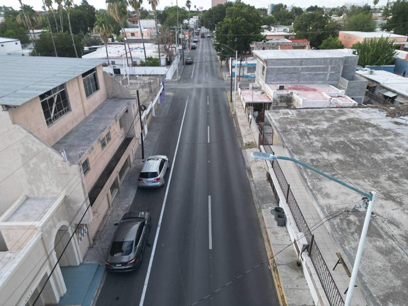 En las colonias Juárez y Jardín se llevó a cabo el recarpeteo asfáltico de la calle José María Morelos y Pavón, en el tramo comprendido entre Venustiano Carranza y Chihuahua.