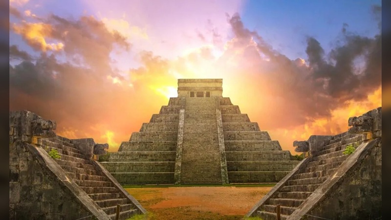 Durante el equinoccio de otoño en Chichén Itzá, el sol dibuja una serpiente de luz y sombra que desciende por la pirámide de Kukulkán.