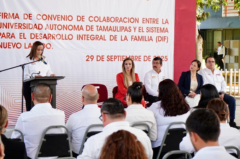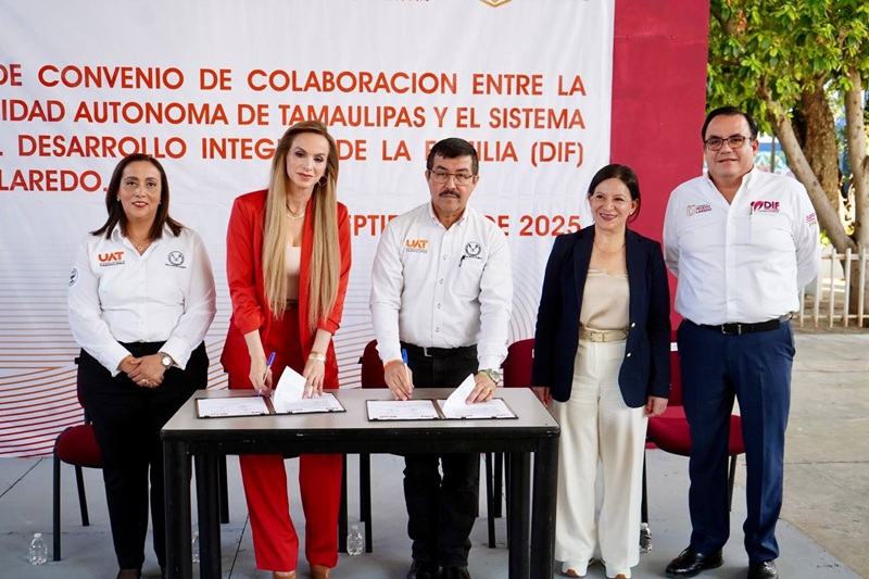 NUEVO LAREDO, TAMPS. Como resultado del trabajo en conjunto entre el Gobierno Municipal y la Universidad Autónoma de Tamaulipas (UAT), el Sistema para el Desarrollo Integral de la Familia (DIF) de Nuevo Laredo firmó un convenio de colaboración con la Facultad de Enfermería de esta ciudad, con el propósito de impulsar la educación, el humanismo y la formación integral de los futuros profesionales de la salud.