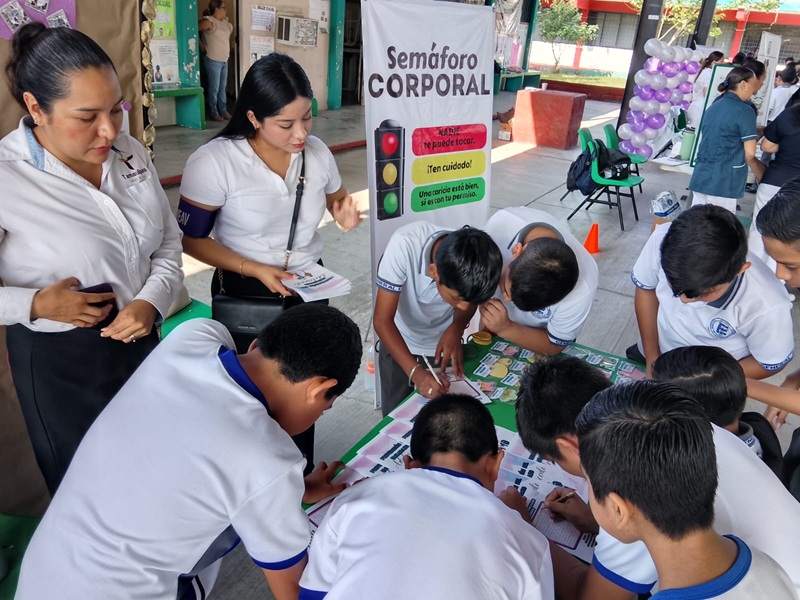 Esta actividad estuvo dirigida a estudiantes de la Escuela Secundaria General Número 7 “Profesor Juventino Pineda y Ortega” y abordó temas relativos a la salud sexual y reproductiva como los métodos anticonceptivos, la Cartilla de los Derechos a la Protección de Salud y Seguridad Social así como la dinámica “semáforo corporal” para prevenir violencia sexual.