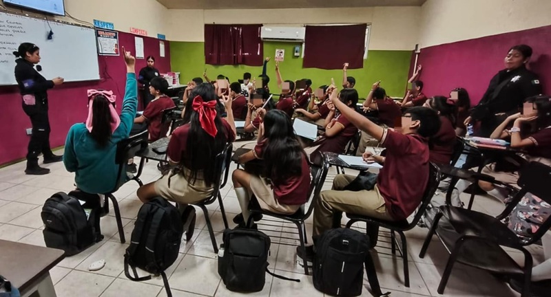 CIUDAD VICTORIA, TAMPS. Con el propósito de garantizar un ambiente libre de violencia y un desarrollo integral para las y los adolescentes de Tamaulipas, personal de la Guardia Estatal de Género implementó dinámicas informativas dirigidas a estudiantes de secundaria en diferentes municipios de la entidad.