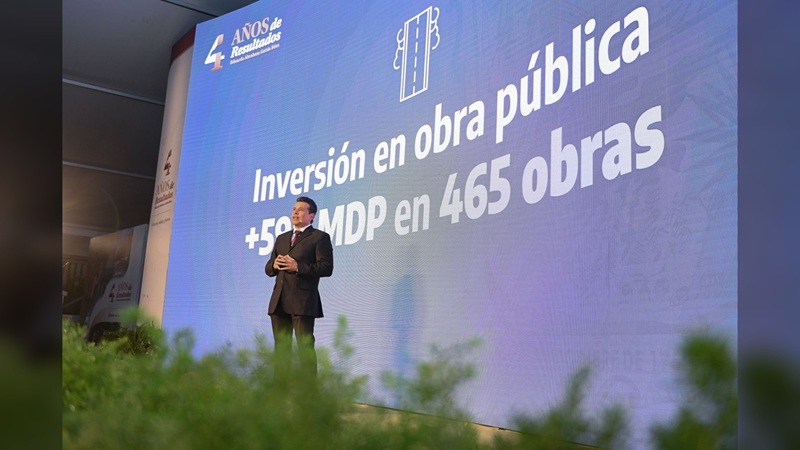 En este camino construido, han sido rehabilitadas 153 vialidades, se han realizado 179 acciones en escuelas con edificación de aulas, techumbres y cisternas, rehabilitación de 14 mil baches y 96 mil metros cuadrados de pavimento asfáltico y concreto hidráulico.