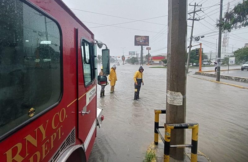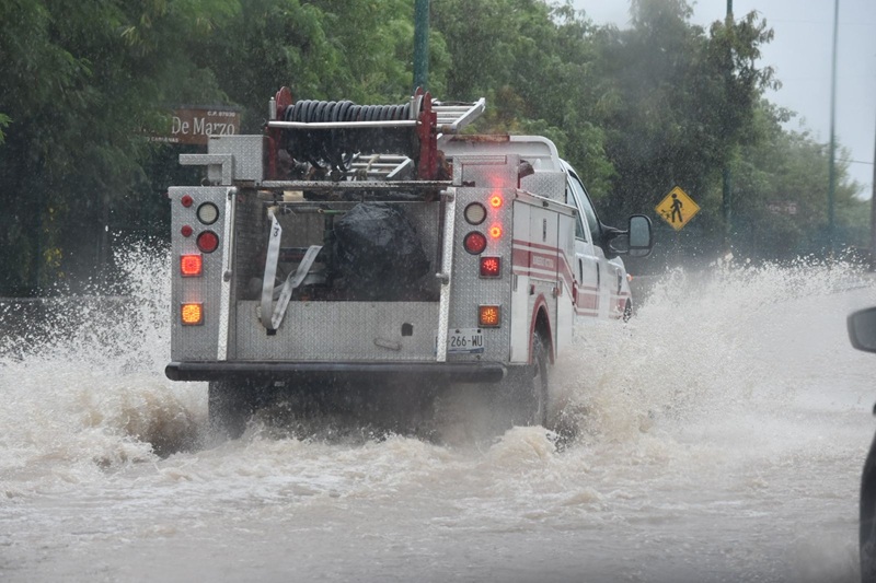 Por instrucción del alcalde Eduardo Gattás Báez, personal de Protección Civil, Servicios Públicos y Obras Públicas del Municipio realizan recorridos por distintos sectores de la ciudad para atender reportes ciudadanos de inundaciones, vehículos varados, vialidades obstruidas o afectadas por la fuerte corriente pluvial.