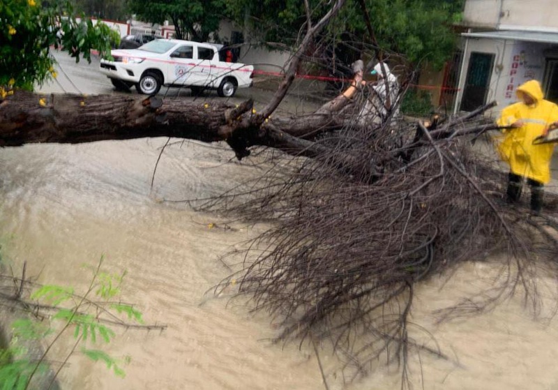 De acuerdo al reporte de PC, durante la noche se brindó auxilio al propietario de un vehículo averiado por hundimiento en zanja en calle 27 Iturbide, se atendió reporte de árbol y cables caídos en los fraccionamientos Magisterial y Arboledas, y se realizaron recorridos preventivos por zonas inundables de la Av. José Sulaimán Chagnón.