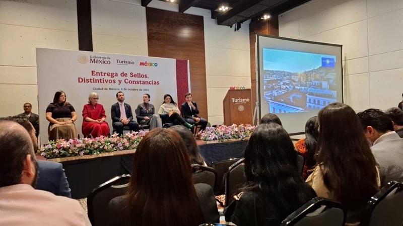 “La ceremonia de entrega de sellos, distintivos y constancias estuvo encabezada por la secretaria de Turismo del Gobierno de México, Josefina Rodríguez Zamora, con la presencia de las 32 entidades del país”.