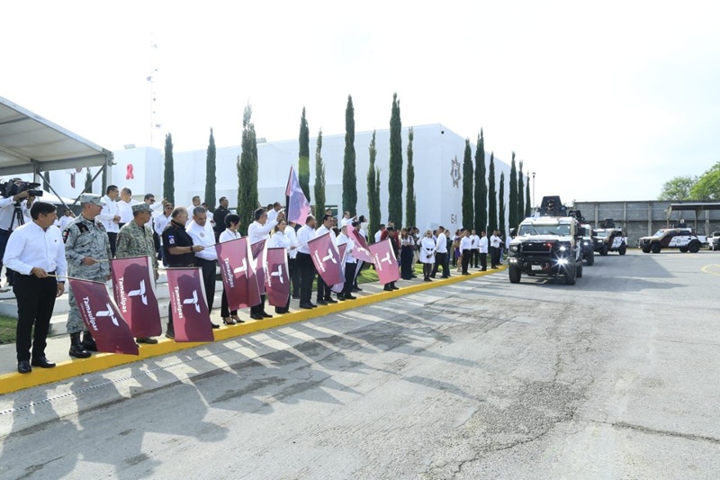 Durante el evento, en el Complejo Estatal de Seguridad Pública, el gobernador dio el banderazo a 14 vehículos blindados tipo Mamba y 15 camionetas pick up Ram 2500, para fortalecer el despliegue operativo de la corporación.