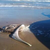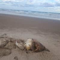 “En estos momentos llegan 4 delfines muertos a playa Bagdad enfrente de la zona de pescadores, es triste ya que esta hembra estaba preñada, por el momento ninguna autoridad ha hecho pronunciamiento”, es el mensaje que hicieron llegar mediante la plataforma de mensajería WhatsApp. Ya anteriormente se habían reportado los cadáveres de varios animales más, algunos destazados y otros solamente los huesos.