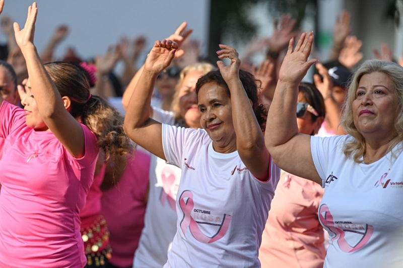 La jornada de activación física para concientizar sobre la prevención de ‘Cáncer de Mama’, se desarrollo por más de una hora con música, baile y gran convivencia entre niñas, jóvenes y adultas que participaron en la noble causa organizada por el gobierno de Victoria.