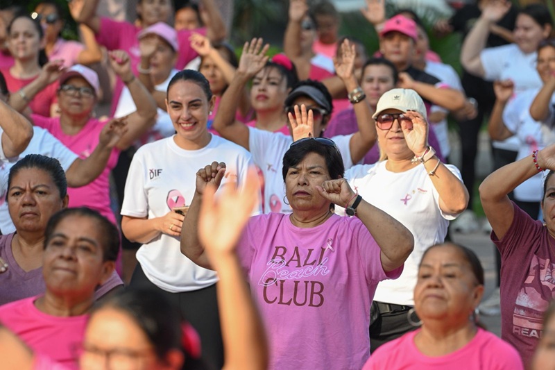 “Para el gobierno que encabeza el alcalde Lalo Gattás ustedes son unas guerreras que luchan con coraje, esperanza y valentía por su salud. Gracias por inspirarnos a ser valientes”, dijo Lorena Zapata Medina, secretaria de Bienestar Social, al inaugurar el zumbaton.