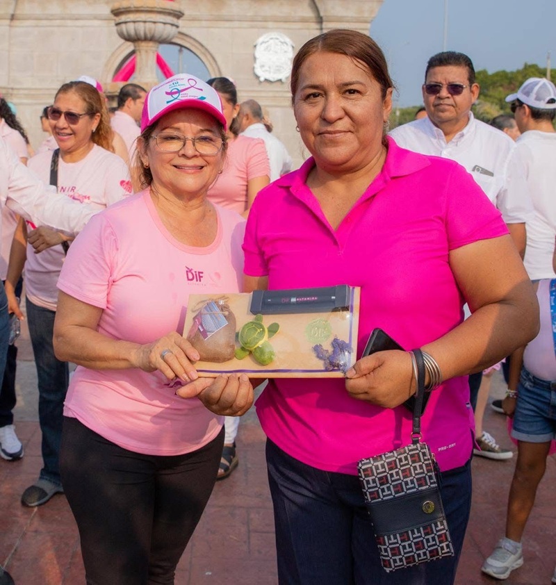 ALTAMIRA, TAMPS. En el marco del ‘Día Internacional de la Lucha Contra el Cáncer de Mama’, Rossy Luque de Martínez encabezó una caminata conmemorativa denominada “Exploratón”, con el objetivo de fomentar la conciencia sobre la detección oportuna de esta enfermedad.