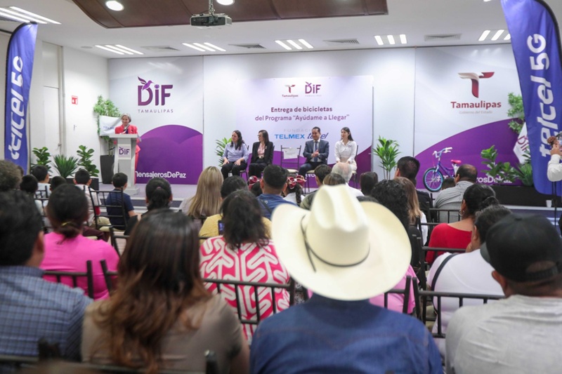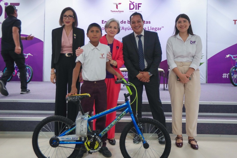 CIUDAD VICTORIA, TAMPS. Con el propósito de garantizar el bienestar, reducir el ausentismo y la deserción escolar de niñas y niños en comunidades de atención prioritaria, el Gobierno de Tamaulipas, a través del Sistema DIF Tamaulipas, presidido por la doctora María de Villarreal, y la Fundación Telmex Telcel, realizaron la entrega de 100 bicicletas a igual número de beneficiarios de siete municipios del estado.