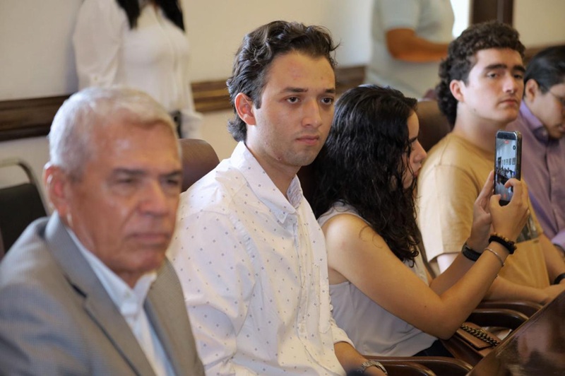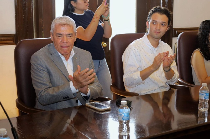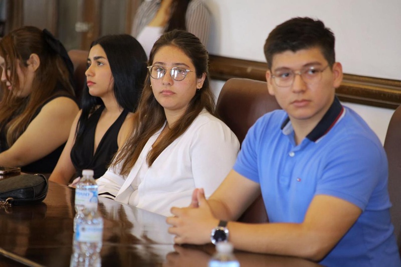 CIUDAD VICTORIA, TAMPS. El Secretario del Ayuntamiento, Hugo Reséndez Silva, recibió en representación del alcalde de Victoria Eduardo Gattás Báez, a los alumnos de la carrera de Derecho de la Universidad La Salle Victoria.