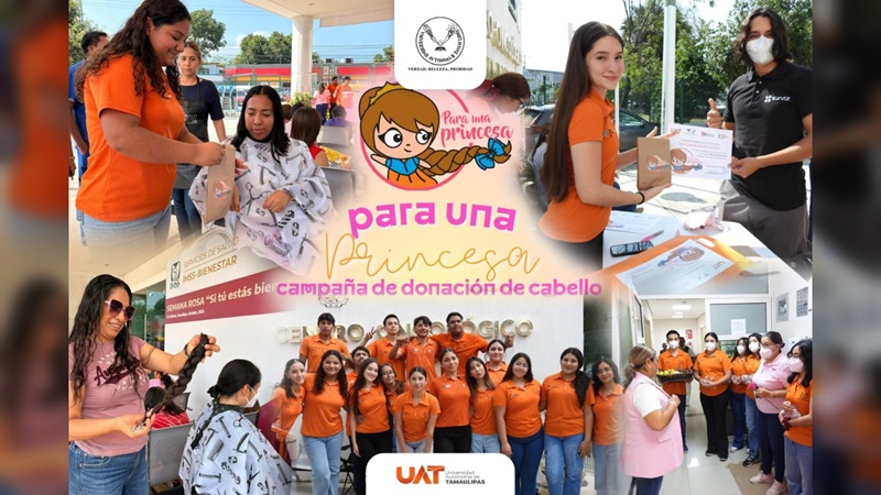 CIUDAD VICTORIA, TAMPS. Con el objetivo de brindar apoyo y esperanza a niñas que enfrentan tratamientos oncológicos, la Universidad Autónoma de Tamaulipas (UAT), a través de su Preparatoria No. 3 de Ciudad Victoria, llevó a cabo una jornada de donación de trenzas de cabello como parte de la campaña permanente “Para una Princesa”.