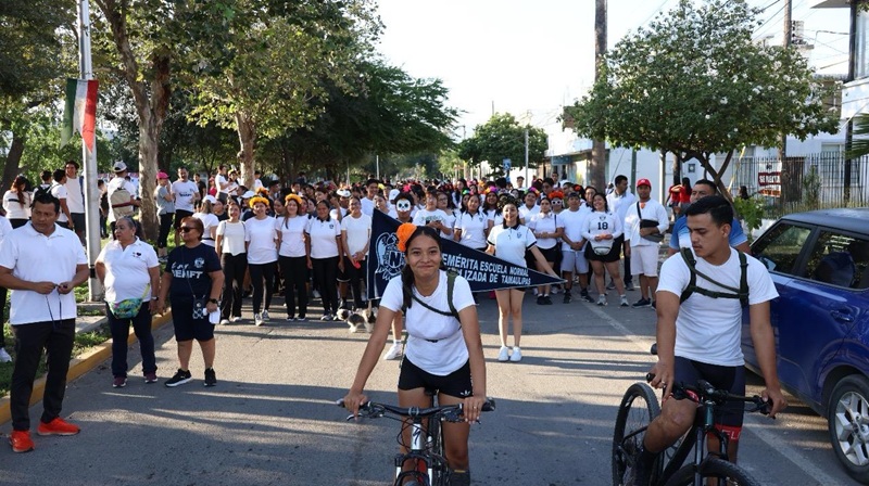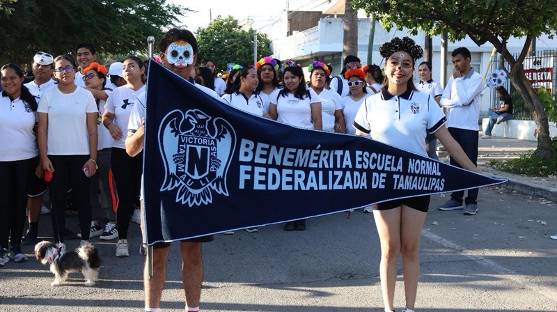 CIUDAD VICTORIA, TAMPS. En el marco de las Jornadas por la Paz y contra las Adicciones, impulsadas a nivel nacional por la presidenta Claudia Sheinbaum Pardo y respaldadas en Tamaulipas por el gobernador Américo Villarreal Anaya, se llevó a cabo la actividad “Día de Muertos: Rodada y Carrera por la Paz y contra las Adicciones”, con la participación de instituciones formadoras de docentes.