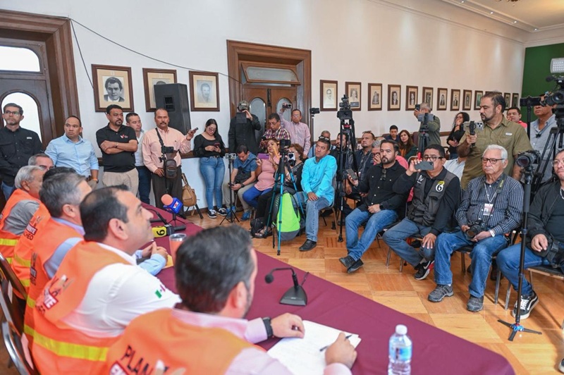 En conferencia de prensa, acompañado del secretario de Obras Públicas Eusebio Alfaro Reyna y el vocero del programa Jorge Bello Méndez, informó que en la primera semana de trabajo se aplicaron 2000 metros cuadrados de carpeta asfáltica en 3 polígonos; y 500 más por parte de la Comisión Municipal de Agua Potable y Alcantarillado (COMAPA) en superficie por reparación de fugas.