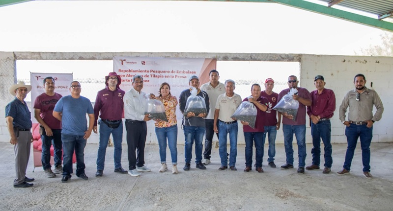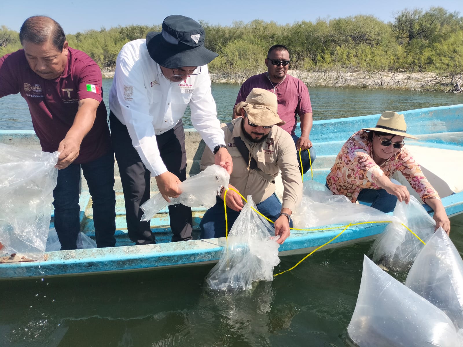 ALTAMIRA, TAMPS. La Secretaría de Desarrollo Rural, Pesca y Acuacultura a través de la Subsecretaría de Pesca y Acuacultura, llevó a cabo la siembra de 200 mil alevines de tilapia en el Sistema Lagunario Río Tamesí-Champayán del municipio de Altamira y en la Presa Marte R. Gómez de Camargo, con el objetivo de garantizar la sustentabilidad de los recursos acuáticos y mejorar las condiciones de producción de las comunidades pesqueras del estado.