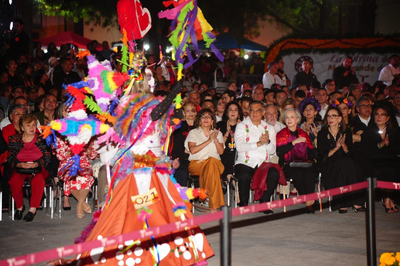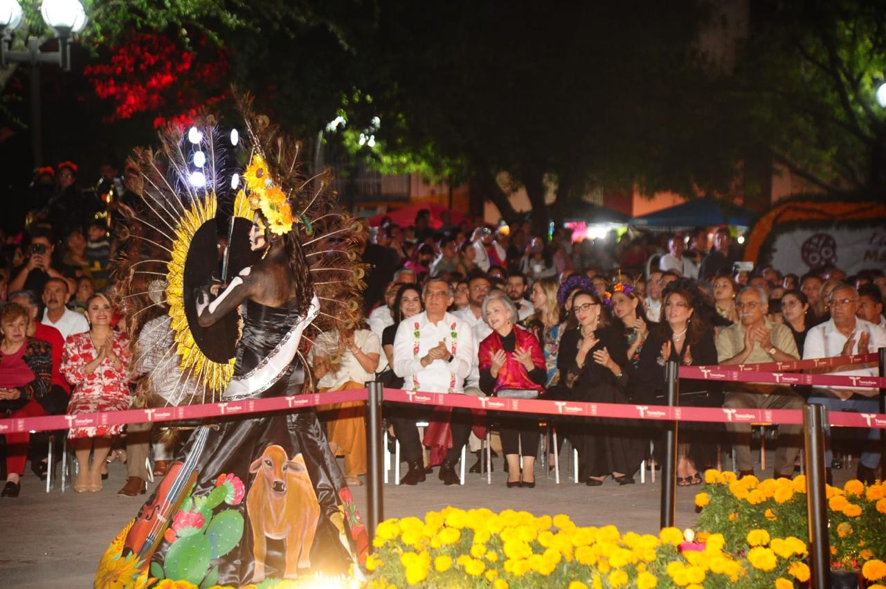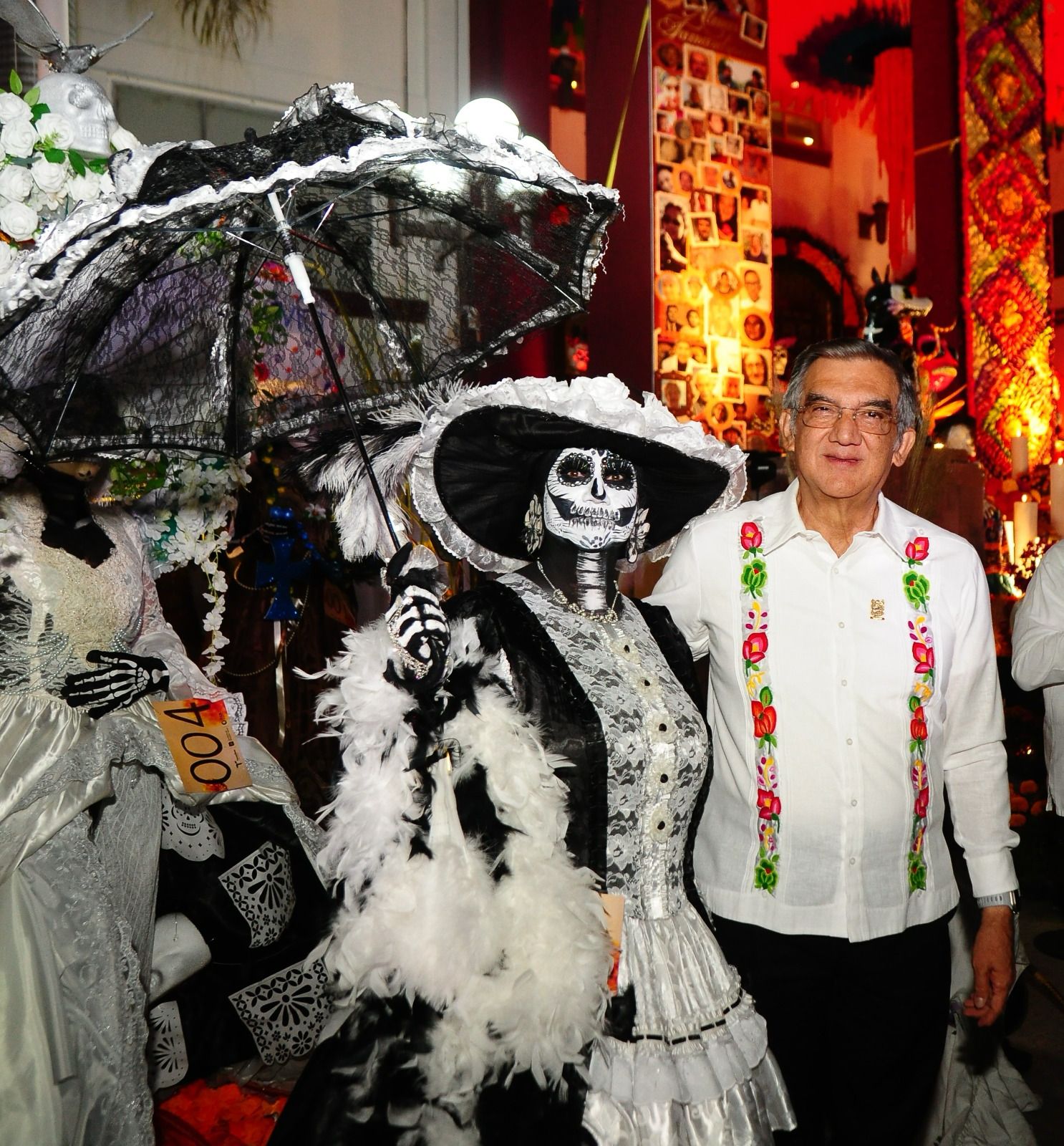 Luego del desfile de catrinas y catrines, el gobernador entregó el premio de primer lugar del certamen a Flor del Mar López Ruiz, del municipio de Llera; el segundo puesto correspondió a Itzamara Lugo Arias, de Nuevo Laredo, y en tercer lugar se ubicó Hanaa Lee Morales, de Altamira.