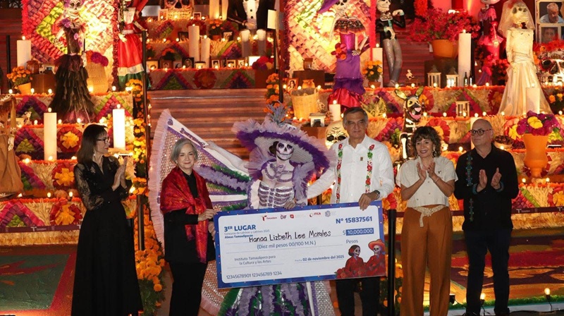 El evento, celebrado en la capital del estado, encabezado por el gobernador, Dr. Américo Villarreal Anaya, reunió a destacadas representaciones de diversos municipios de Tamaulipas, consolidándose como un espacio para promover el arte, la tradición y la identidad cultural en torno a las celebraciones del ‘Día de Muertos’.