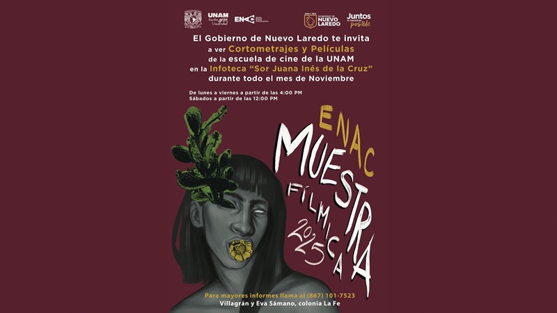 NUEVO LAREDO, TAMPS. La Infoteca ‘Sor Juana Inés de la Cruz’ de Nuevo Laredo, Tamaulipas, fue seleccionada como sede nacional para la proyección de cortometrajes y películas de la Muestra Fílmica 2025 de la Escuela Nacional de Artes Cinematográficas (ENAC).