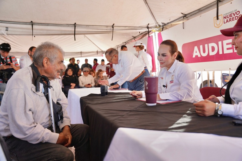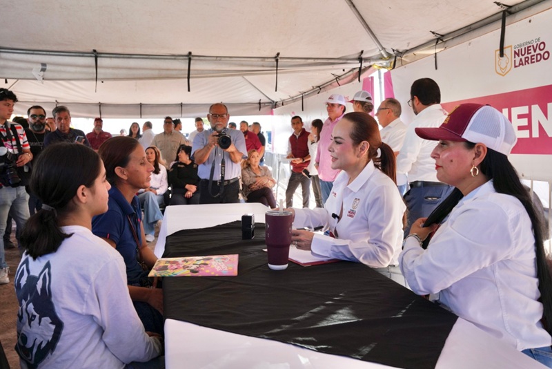 NUEVO LAREDO, TAMPS. La presidenta municipal Carmen Lilia Canturosas Villarreal encabezó una nueva edición del programa “Presidencia Cerquita de Ti” en la colonia Naciones Unidas, donde atendió personalmente a las familias del sector, escuchó sus peticiones y se comprometió a continuar trabajando por su bienestar, especialmente con la construcción de espacios para la convivencia y recreación familiar.