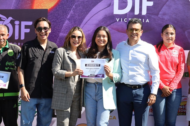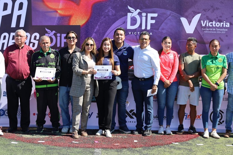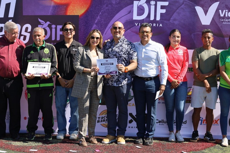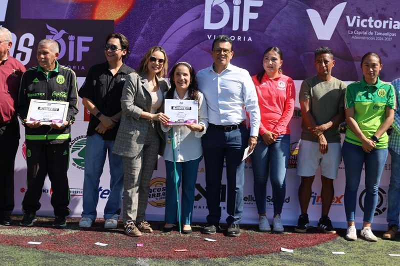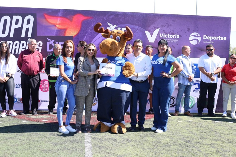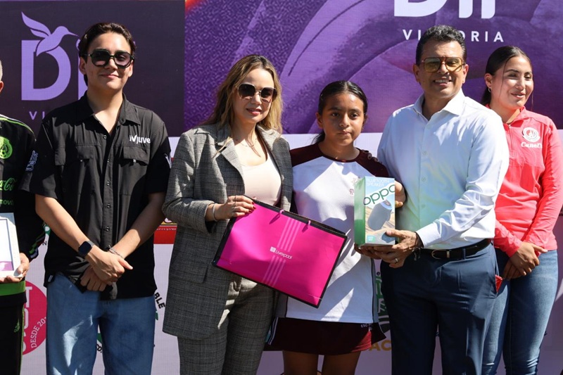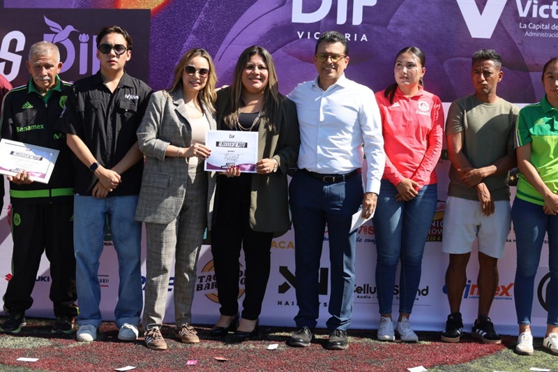 La presidenta del Sistema DIF, Lucy de Gattás, y el alcalde de Victoria, Eduardo Gattás Báez, presidieron la ceremonia de clausura en la cancha Enrique Borja, donde entregaron premio de primer lugar a los equipos, femenil y varonil, de la Secundaria Rafael Ramírez.