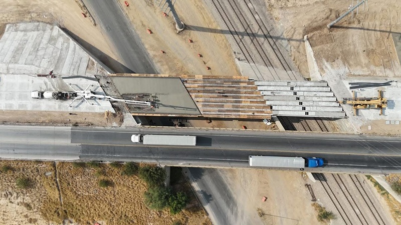 Actualmente, las cuadrillas especializadas trabajan en el vaciado de las losas del puente, una de las etapas finales antes de su conclusión estructural.