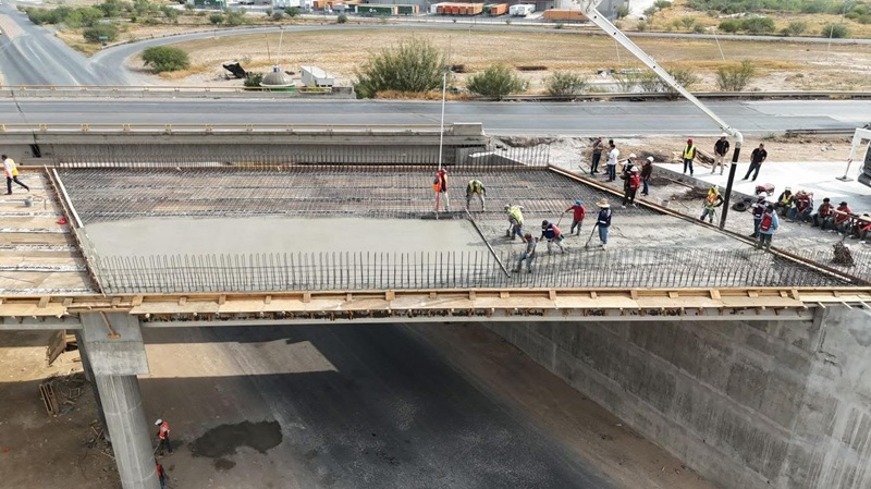 NUEVO LAREDO, TAMPS. La construcción del nuevo puente en el Libramiento MEX II avanza con paso firme y se perfila como una obra clave para mejorar la seguridad vial y agilizar el flujo del transporte de carga, beneficiando a miles de operadores y ciudadanos que diariamente utilizan esta ruta estratégica para el comercio internacional.