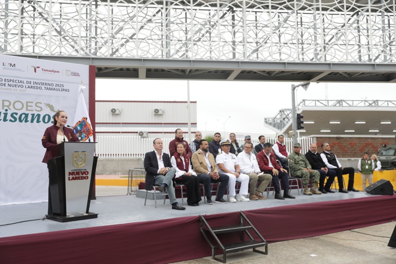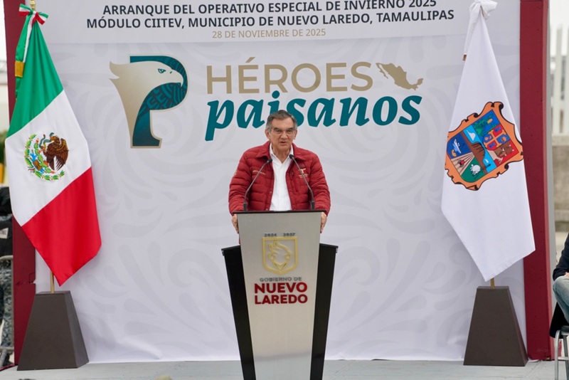 NUEVO LAREDO, TAMPS. Con un mensaje de unidad y coordinación entre los diferentes niveles de gobierno, el gobernador de Tamaulipas, Américo Villarreal Anaya, y la alcaldesa de Nuevo Laredo, Carmen Lilia Canturosas Villarreal, encabezaron el Arranque Oficial del Operativo Especial de Invierno 2025 “Héroes Paisanos”, refrendando el compromiso conjunto de brindar seguridad, atención y un tránsito ordenado a los connacionales que ingresan al país durante la temporada decembrina.