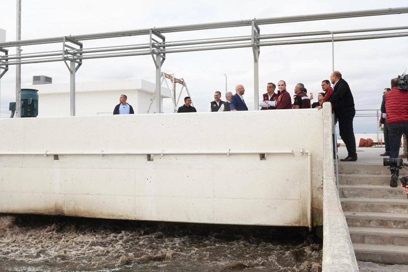 “Es muy satisfactorio constatar los avances de esta planta internacional, una obra con visión de futuro que permitirá abastecer a una industria creciente mediante líneas moradas y, al mismo tiempo, generar un gran beneficio ambiental. El agua tratada podrá reutilizarse o regresar al Río Bravo con calidad adecuada. Gracias al esfuerzo conjunto de los 3 niveles de gobierno y del NADBank, tendremos la capacidad de tratar 1,600 litros por segundo”, señaló Canturosas Villareal.