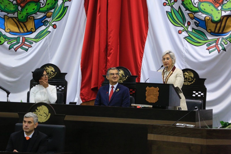“Para mí, querida maestra, es un orgullo estar presente en esta sesión solemne y atestiguar que la Medalla al Mérito ‘Luis García de Arellano’, la recibe usted, a cuyo reconocimiento me sumo absolutamente y con enorme gusto”, dijo.