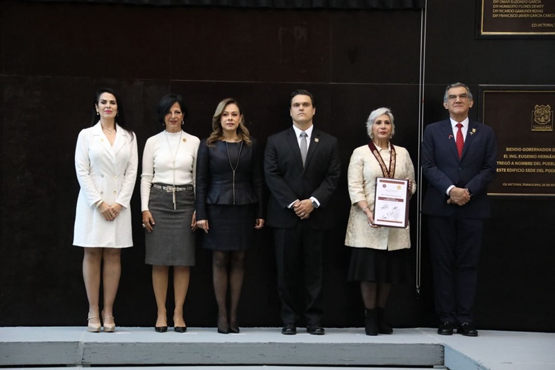 “Para mí es un honor ser testigo de la entrega de esta medalla, reconocimiento que otorgamos a personas tamaulipecas que dejan huella y que enaltecen a Tamaulipas, no solo en México, sino también a nivel internacional, como lo ha hecho la Maestra Cecilia Lugo”, señaló.