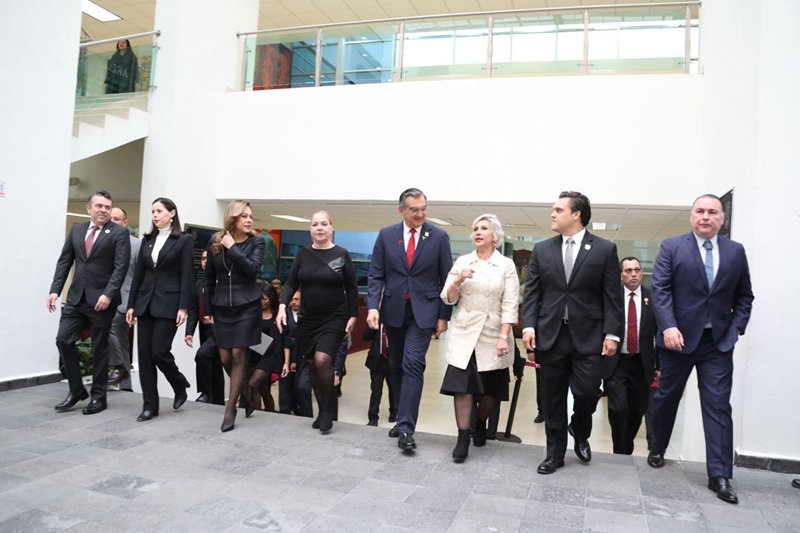 CIUDAD VICTORIA, TAMPS. Durante la sesión solemne realizada este lunes 1 de diciembre, el Diputado Presidente de la JUGOB, Humberto Prieto Herrera, junto al Gobernador del estado de Tamaulipas, Américo Villarreal Anaya, realizó la entrega de la Medalla al Mérito “Luis García de Arellano” y develaron el nombre de la galardonada en el muro honor.