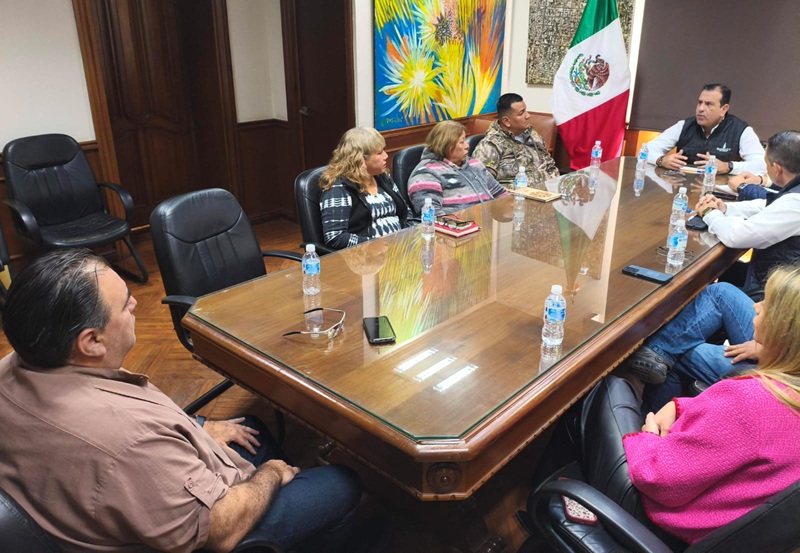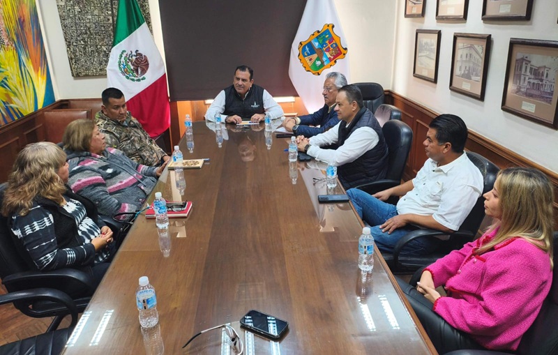 Por instrucción del alcalde Eduardo Gattás Báez, el secretario del Ayuntamiento Hugo Reséndez Silva presidió la reunión de colaboración en la que estuvo presente Livio Flores Rodríguez, coordinador de Protección Civil, Luis Peláez, de la Mesa de Seguridad Municipal, y José Hernández Cuesta, de Participación Ciudadana.