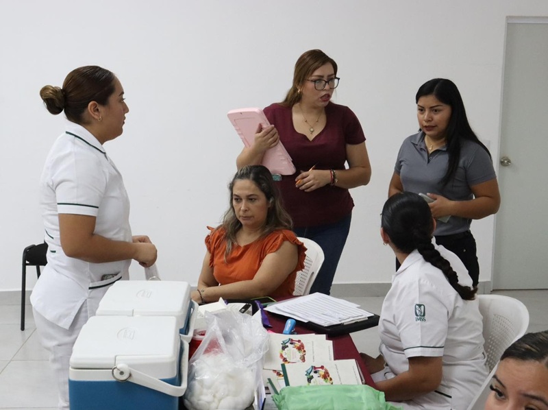 ALTAMIRA, TAMPS. Cuidando la salud del personal y cumpliendo con la encomienda del gerente general del organismo, Dr. Gabriel Arcos Espinosa, la Comisión Municipal de Agua Potable y Alcantarillado de Altamira, con el apoyo del Instituto Mexicano del Seguro Social, realiza una jornada de vacunación y detección de glucosa.