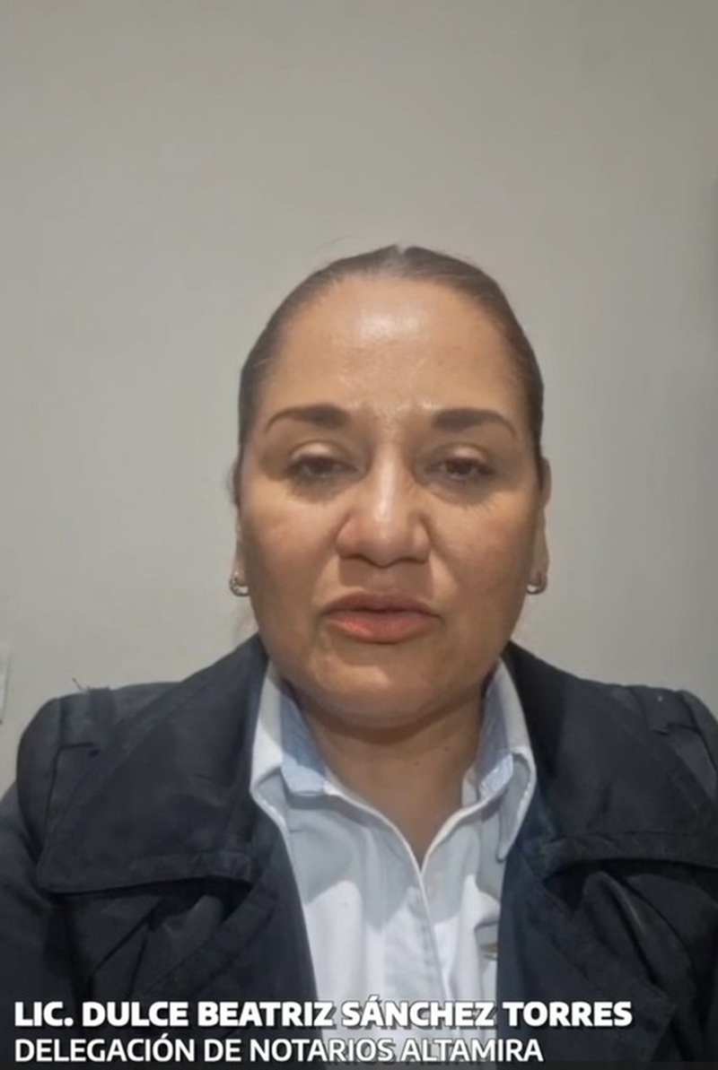 Dulce Beatriz Sánchez Torres, representante de la Delegación de Notarios de Altamira, expresó su felicitación a Govea Orozco y reconoció su vasta experiencia en el ámbito de la procuración de justicia.