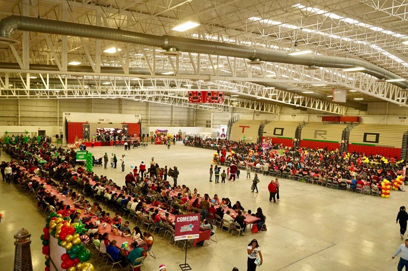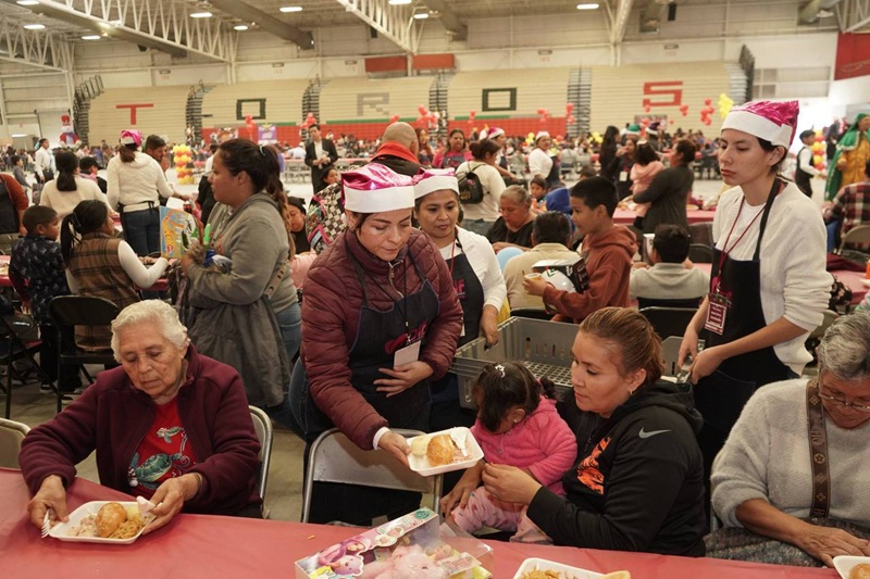 El evento tuvo lugar en el Polyforum La Fe, donde se sirvieron más de 10 mil platillos tradicionales de pavo. Las niñas y los niños recibieron juguetes que iluminaron su sonrisa en esta temporada, mientras que las familias también obtuvieron cobijas para hacer frente a las bajas temperaturas propias del invierno.
