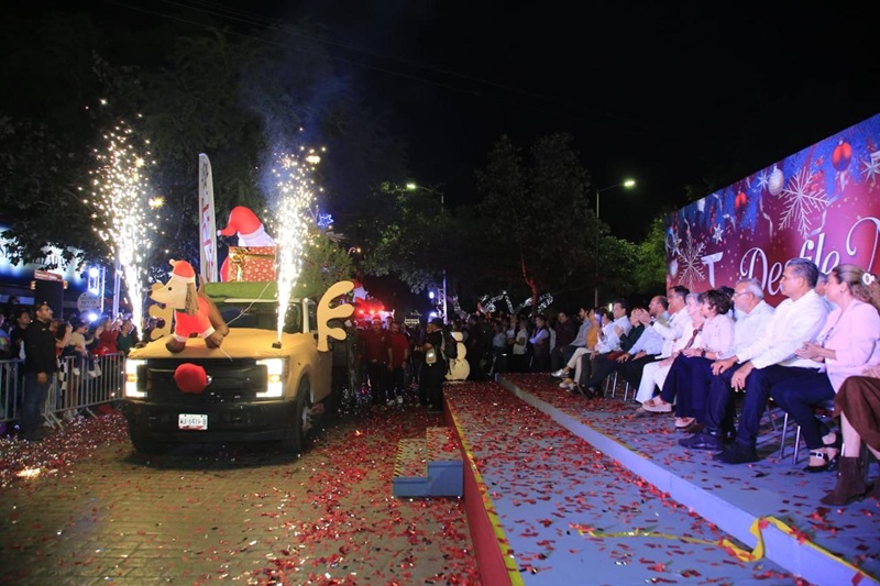 La fiesta navideña arrancó con un desfile de 24 carros alegóricos de las distintas dependencias del Gobierno del Estado que recorrieron toda la avenida Francisco I. Madero, pasando frente al estrado principal, ubicado en el 17 Hidalgo.