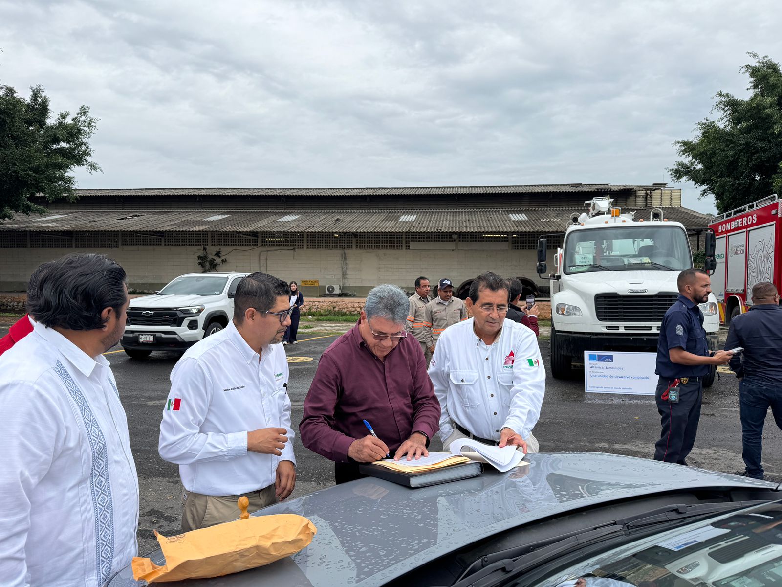 La entrega, realizada por Petróleos Mexicanos (PEMEX) y la empresa Linde NITROPET, consiste en un camión de bomberos modelo 2024 y un equipo combinado de desazolve modelo 2025, con una inversión conjunta aproximada de 23 millones de pesos.