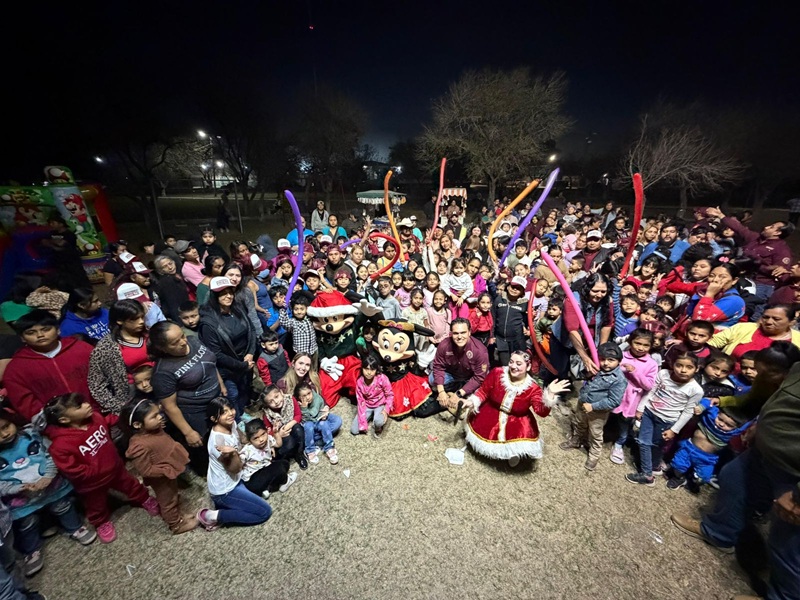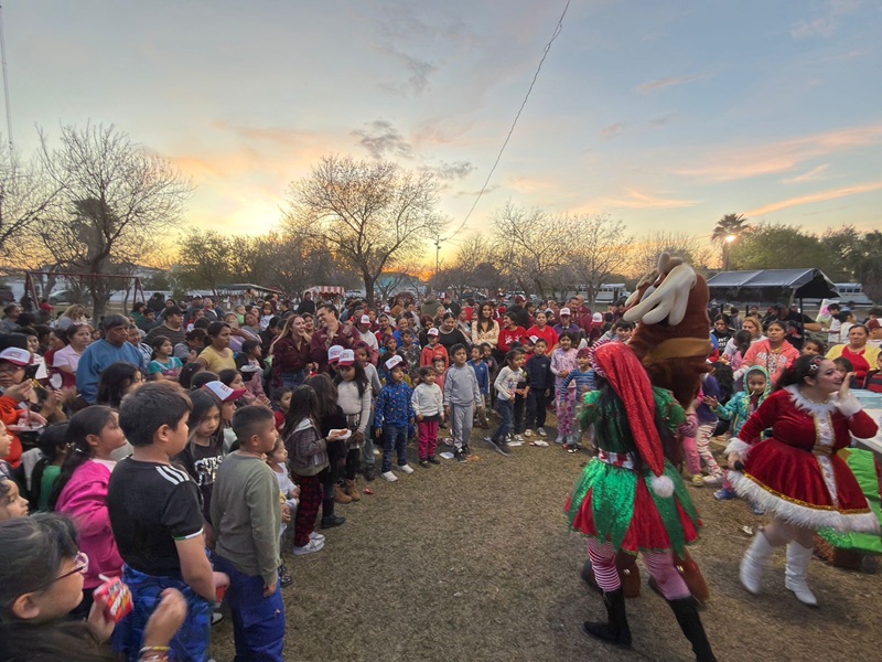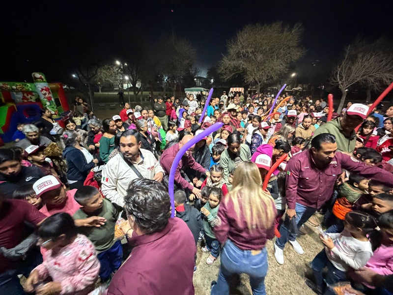 Con una afluencia de más de 300 niñas y niños, acompañados de sus papás y abuelitos, se celebró la fiesta navideña en la plaza de la colonia Almaguer, lugar donde las familias recibieron con alegría al anfitrión de la posada.