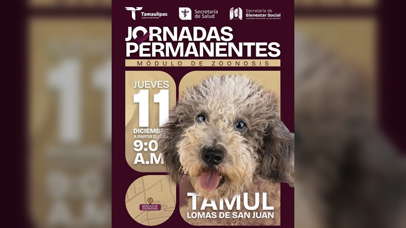MATAMOROS, TAMPS. Este jueves 11 de Diciembre, por iniciativa del alcalde Beto Granados, el Módulo de Zoonosis llegará al ‘Tamul Lomas de San Juan’ desde las 9:00 de la mañana, acercando cuidados esenciales que contribuyen al bienestar de nuestras mascotas.