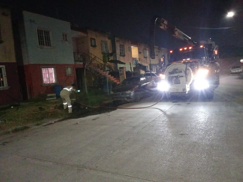 Con el apoyo de camiones de presión y vacío, personal técnico especializado de este organismo realizó el sondeo y desazolve de descargas en calle México de la colonia Benito Juárez, y en la Escuela Primaria “Jaime Torres Bodet” del Fraccionamiento Paseo Real.