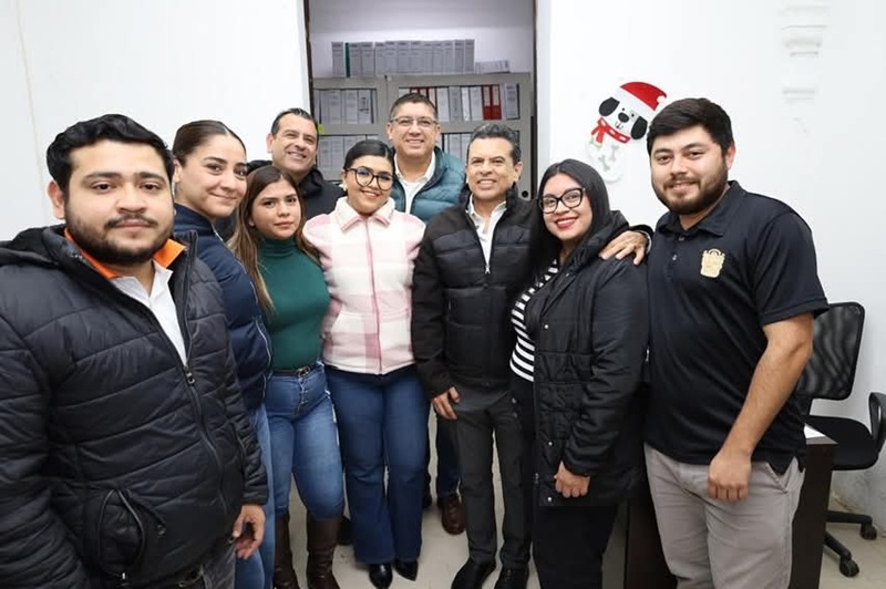 CIUDAD VICTORIA, TAMPS. El alcalde de Victoria, Lalo Gattás, recorrió las áreas administrativas del Ayuntamiento para saludar y agradecer al personal por el trabajo realizado durante el año en beneficio de la ciudadanía victorense.