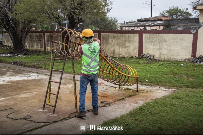 MATAMOROS, TAMPS. Como parte del compromiso por rescatar y dignificar los espacios públicos, el alcalde de Matamoros, Beto Granados, impulsa las acciones de rehabilitación que se desarrollan en la colonia México Agrario, donde un lugar emblemático de historia y convivencia está por recuperar su vitalidad en beneficio de las familias del sector.