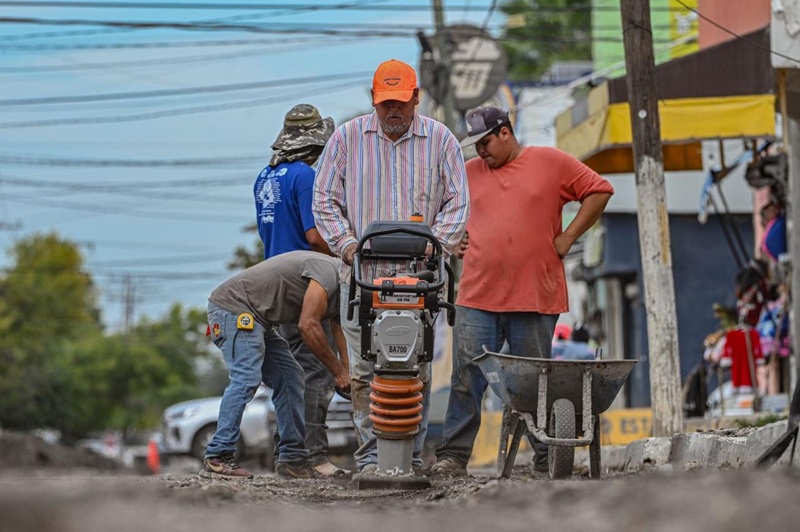 Atendiendo la instrucción del alcalde Lalo Gattás, en el arranque de la jornada semanal se retomó en la calle 27 Lauro Rendón, de la colonia Nacozari, tareas de nivelación de superficie y recubrimiento de excavaciones realizadas por COMAPA para la instalación de nueva tubería.