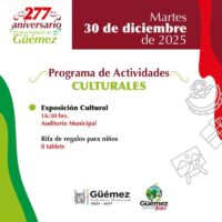 ​1.- Por cierto, este lunes 29 de diciembre se da inicio a los festejos conmemorativos del 277 Aniversario de la Fundación de la Villa de Güémez, Tamaulipas, según dicho por su alcalde José Lorenzo Morales Amaro.