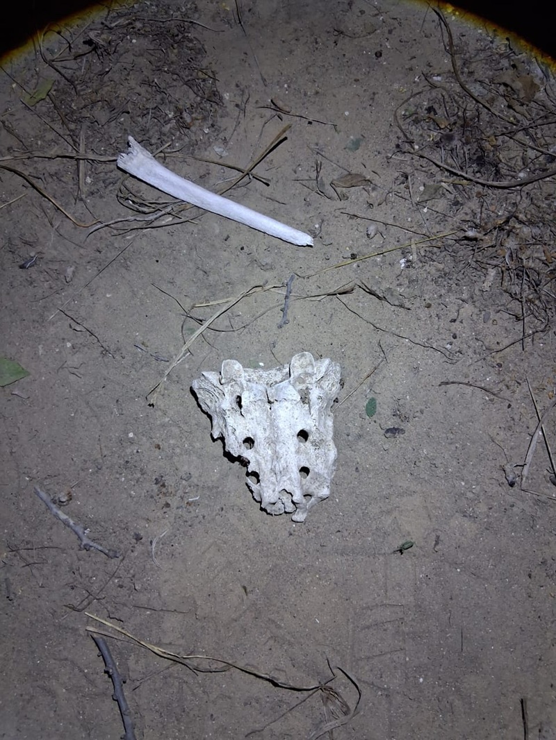 Entre los restos encontrados se identificó un cráneo perteneciente a una persona del sexo masculino, al que le falta parte de la bóveda craneana, el maxilar inferior y la mayoría de las piezas dentales, así como fragmentos de costillas, un coxis y un fémur.
