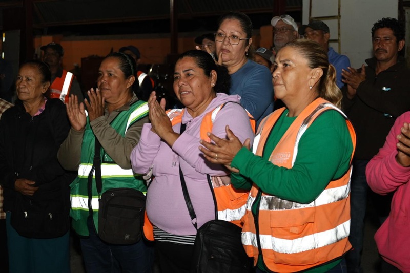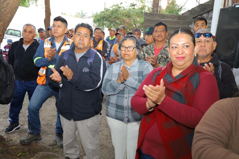 En gira de trabajo conjunta por los campamentos de barrido manual, parques y jardines, Gattás reconoció la importante labor que realiza el personal del área de Servicios Públicos para cuidar y mantener durante todo el año la imagen urbana de la Capital del Estado.
