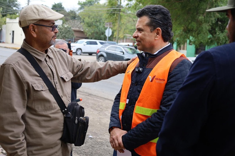 CIUDAD VICTORIA, TAMPS. En gira de trabajo, el alcalde de Victoria, Lalo Gattás, supervisó la rehabilitación de carpeta asfáltica en la calle Lauro Rendón de la colonia Héroe de Nacozari, obra que registra un 90% por ciento de avance y beneficiará a 28,575 habitantes.