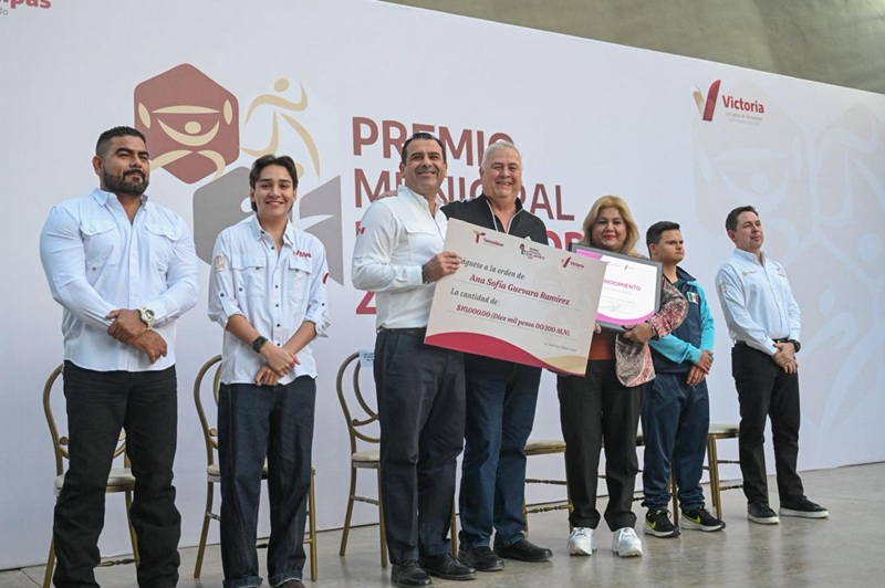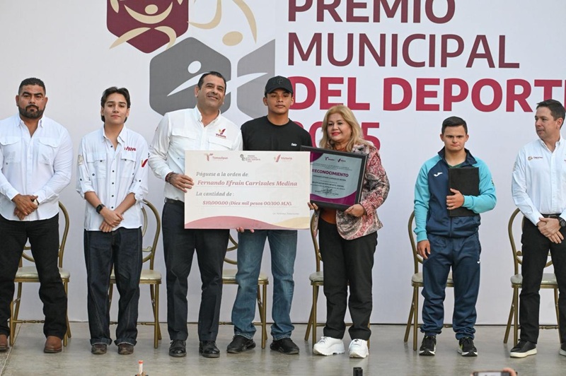 CIUDAD VICTORIA, TAMPS. El gobierno de Victoria, que preside el alcalde, Lalo Gattás, galardono a ocho atletas en la ceremonia del Premio Municipal del Deporte y reconoció como Deportista del Año 2025 a Gabriel “La Flecha” Avilés por la conquista de 6 medallas de oro en campeonatos nacionales e internacionales de para-atletismo.